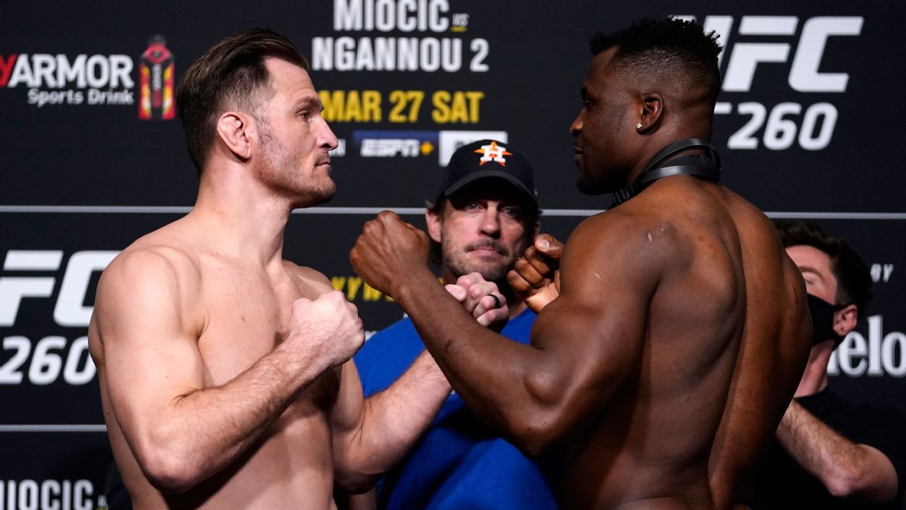 Ngannou (11-3), meanwhile, is perhaps the most dangerous knockout artist in UFC history. The Cameroon native, who now lives and trains in Las Vegas, has won four in a row, all by first-round KO/TKO. In those past four bouts, the 34-year-old Ngannou has stopped his opponents in 72 seconds or less. He has eight first-round finishes in 10 UFC wins.