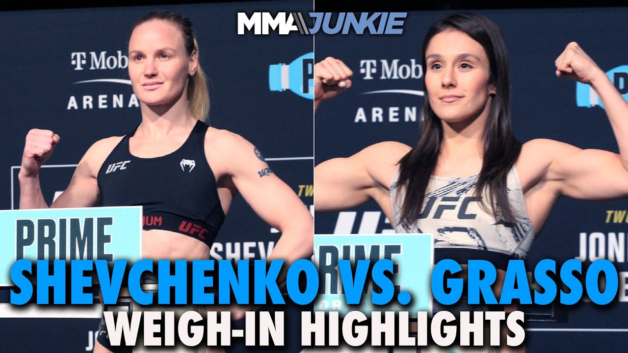 Watch champion Valentina Shevchenko and challenger Alexa Grasso make weight for their UFC 285 women’s flyweight title bout on Saturday in Las Vegas.