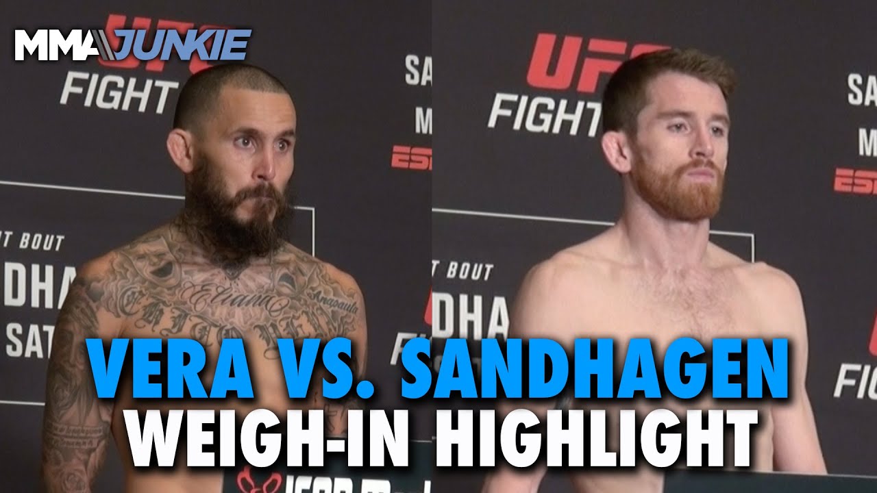Watch Marlon Vera and Cory Sandhagen make weight for their UFC on ESPN 43 main event bout on Saturday in San Antonio.